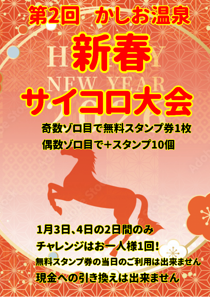 2026年もサイコロコロコロから始まります。1月3日、4日の2日間お一人様1回の運試し! 皆様のご参加お待ちしてます。
